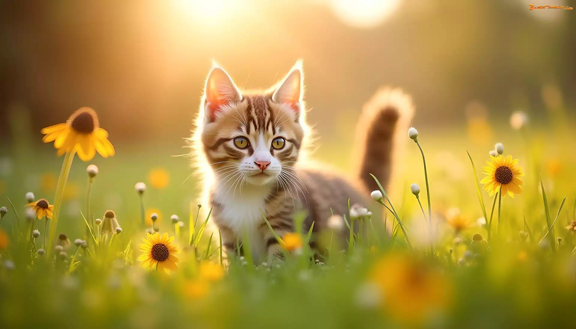 Zdjęcie: Mały, Kot, Grafika, Kwiatki