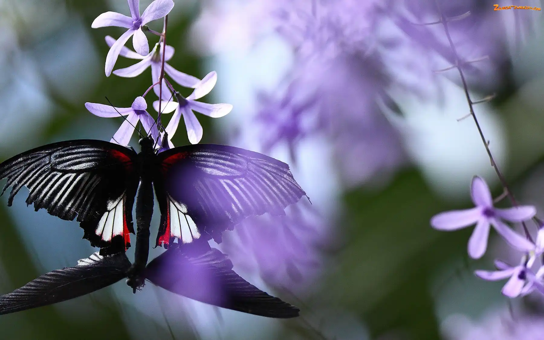 Zdjęcie: Kwiatki, Czarny, Motyl. Fioletowe