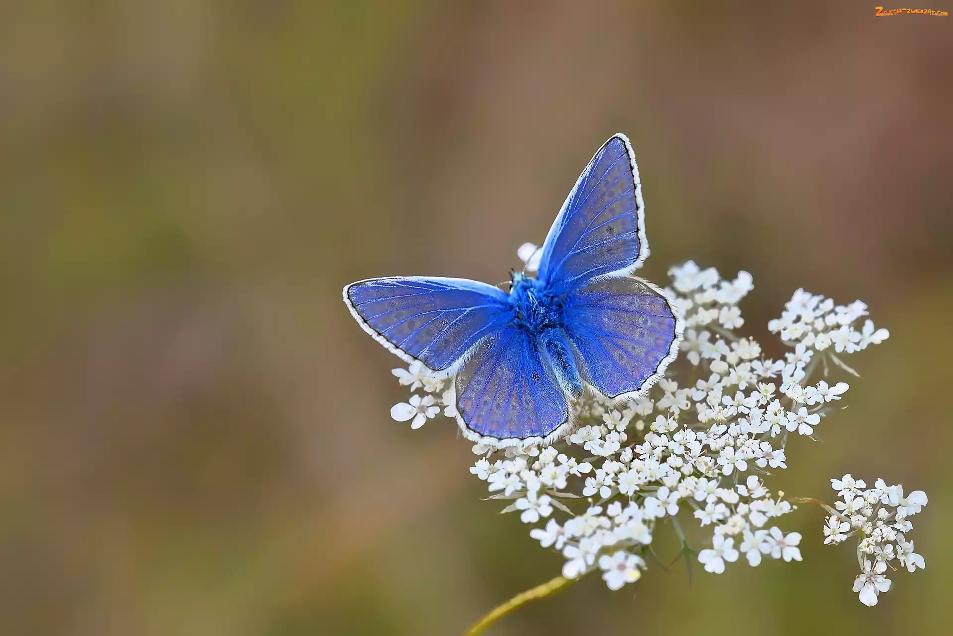 Zdjęcie: Kwiatki, Białe, Motyl, Niebieski, Motylek