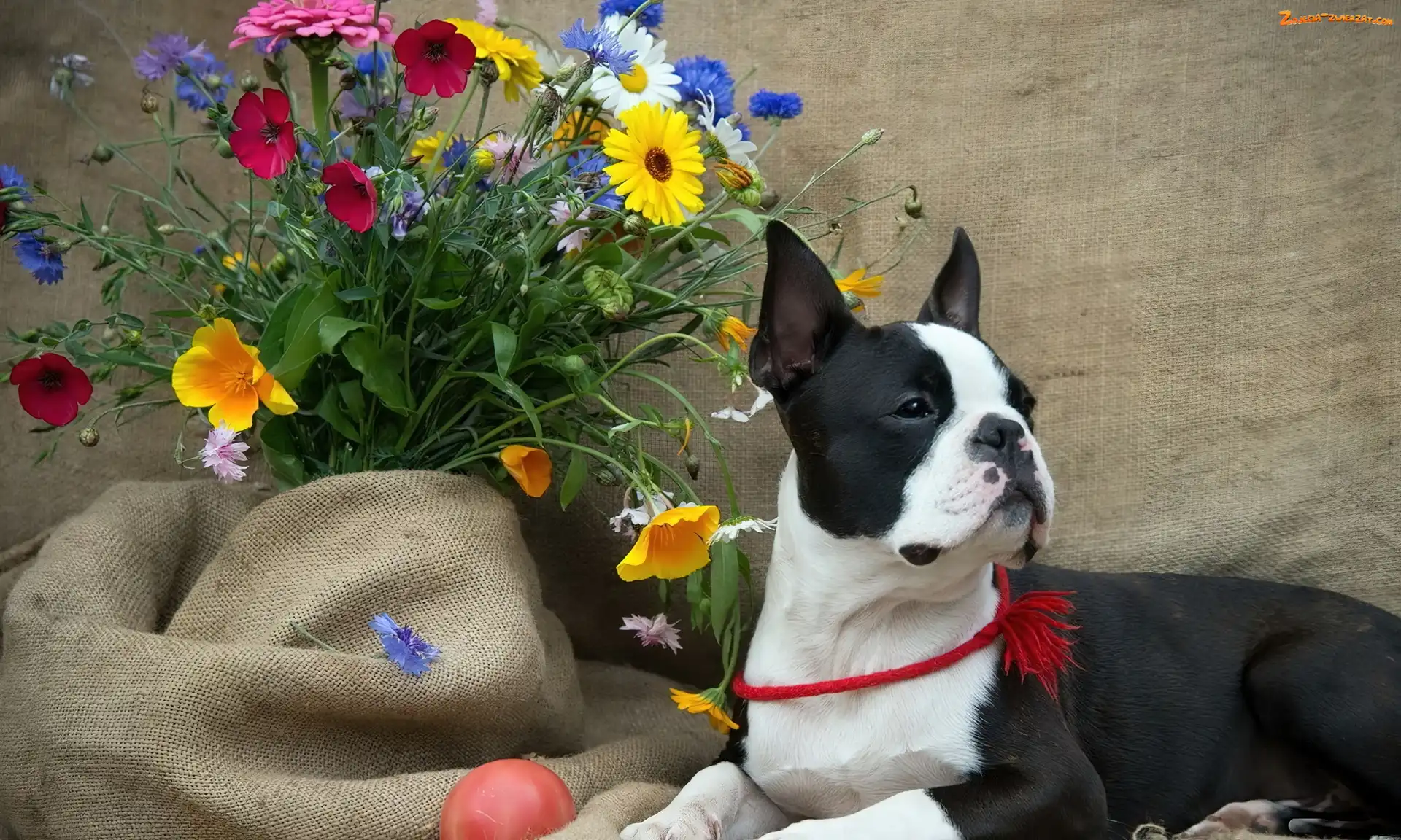 Zdjęcie: Kwiatów, Bukiet, Biały, Czarno, Piesek