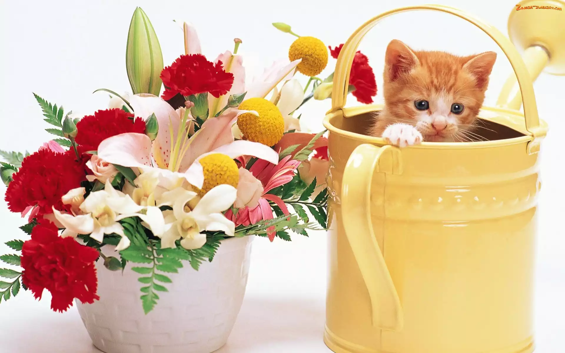 Zdjęcie: Kwiatów, Bukiet, Kociak, Mały, Konewka