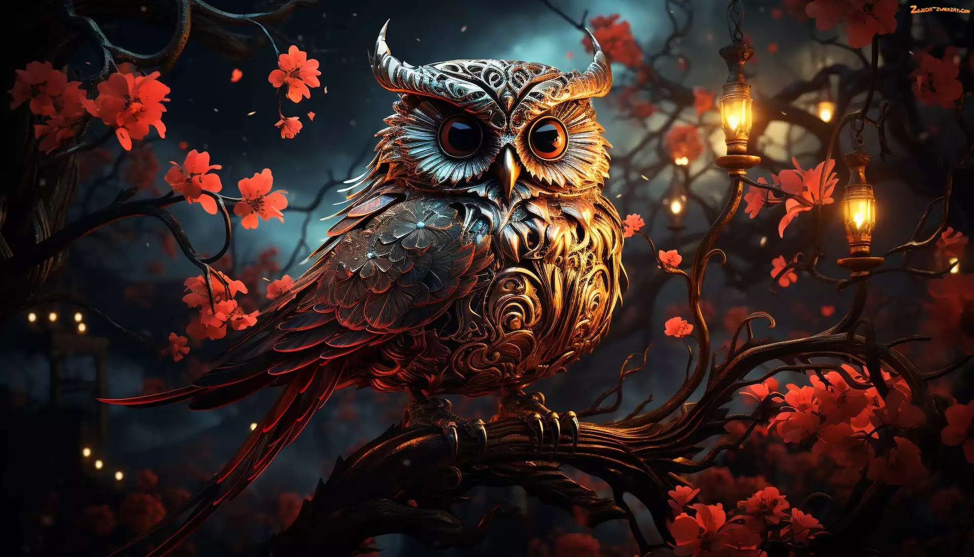 Zdjęcie: Lampy, Kwiaty, 2D, Sowa, Gałęzie