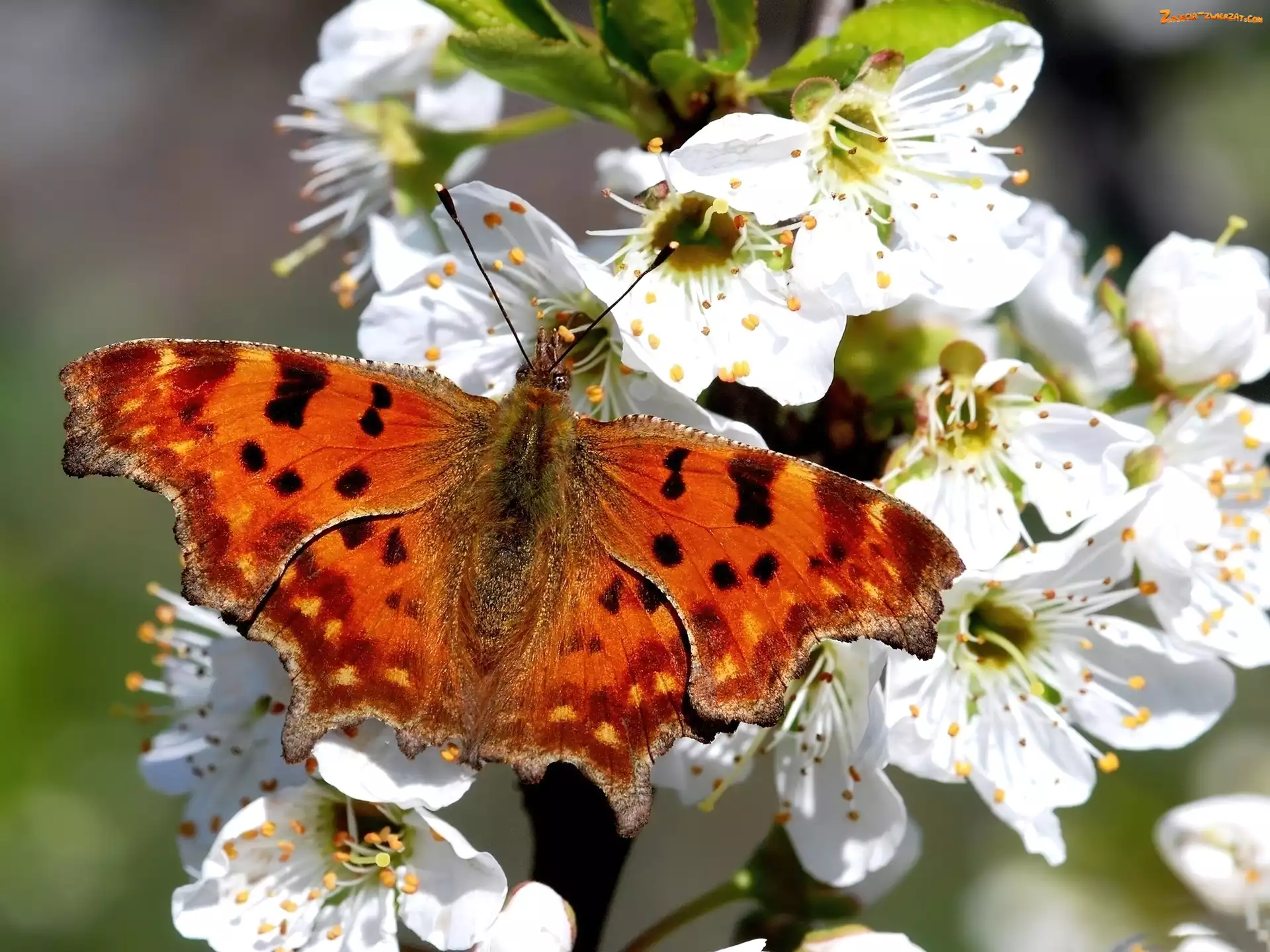 Zdjęcie: Kwiaty, Motyl, Białe, Pomarańczowy