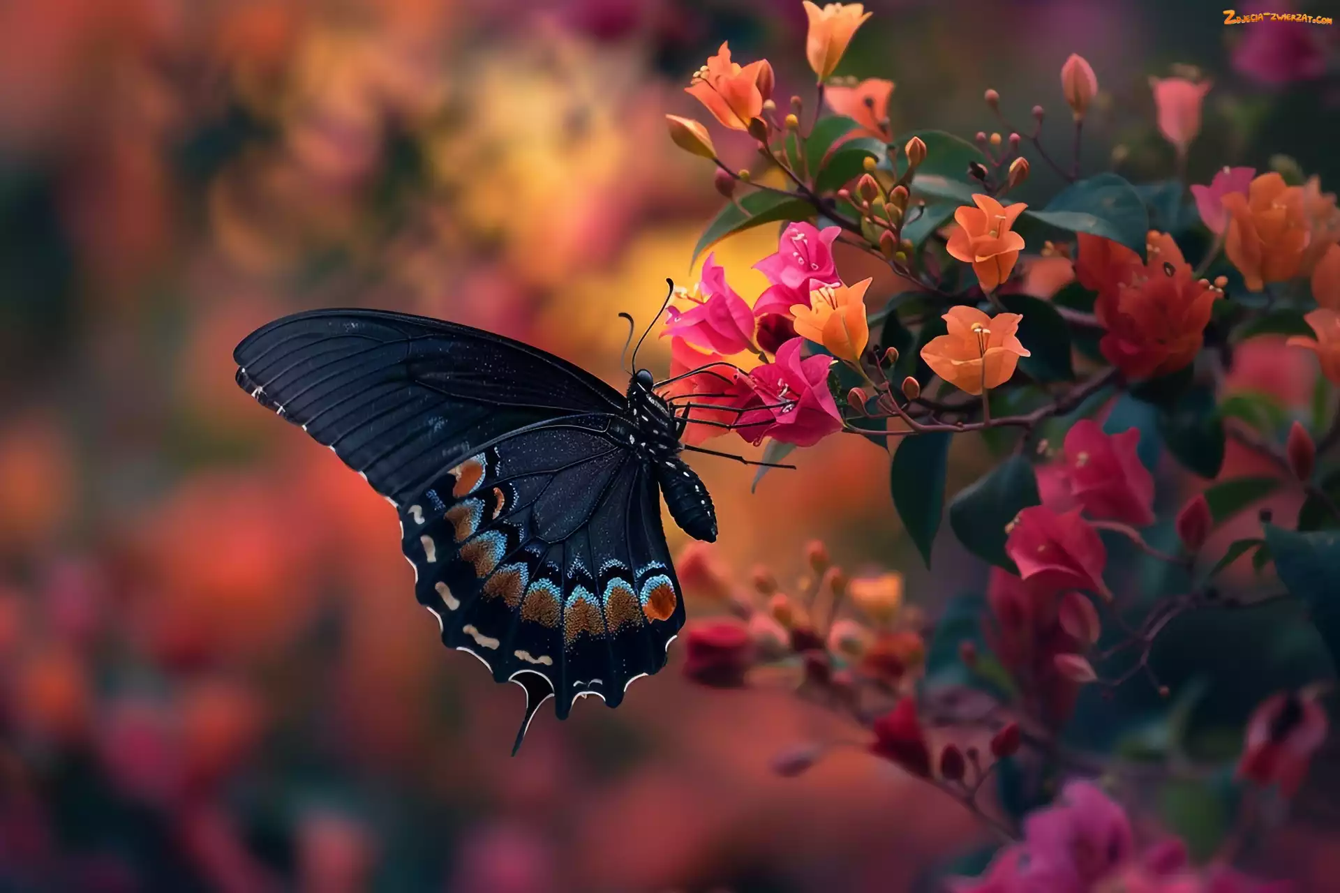 Zdjęcie: Czarny, Motyl, Grafika, Kwiaty