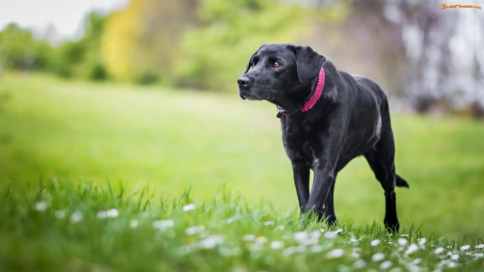 Zdjęcie: Kwiaty, Trawa, Pies, Czarny, Obroża