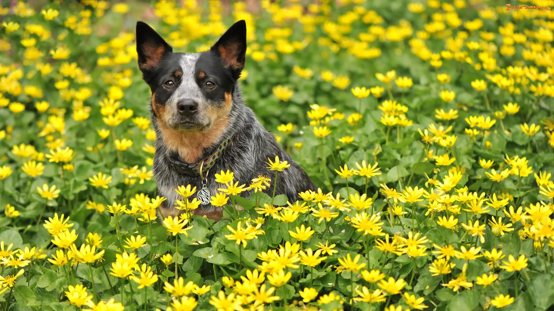 Kwiaty, Australian cattle dog, Łąka