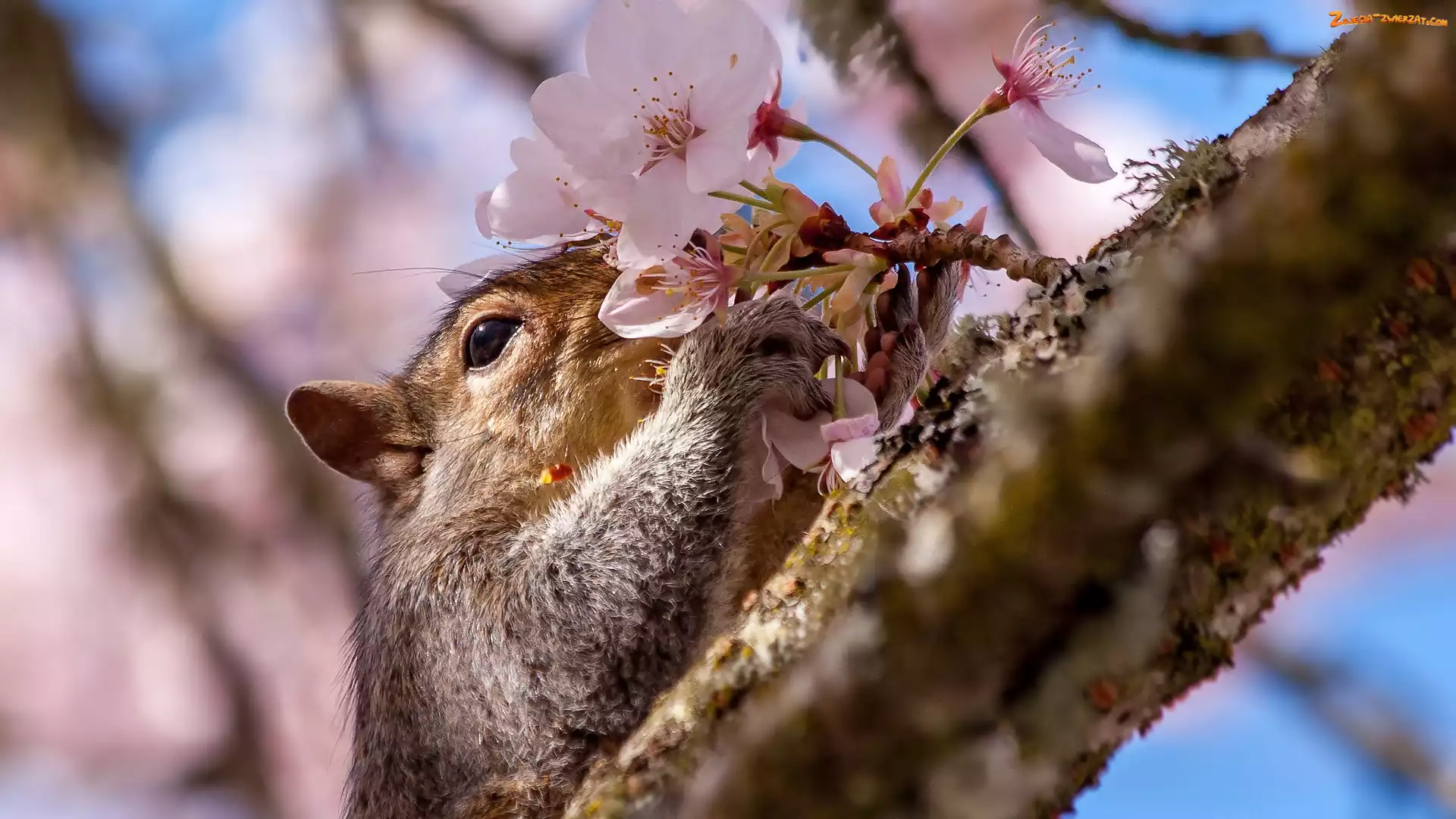 Zdjęcie: Kwiaty, Wiewiórka, Drzewo owocowe