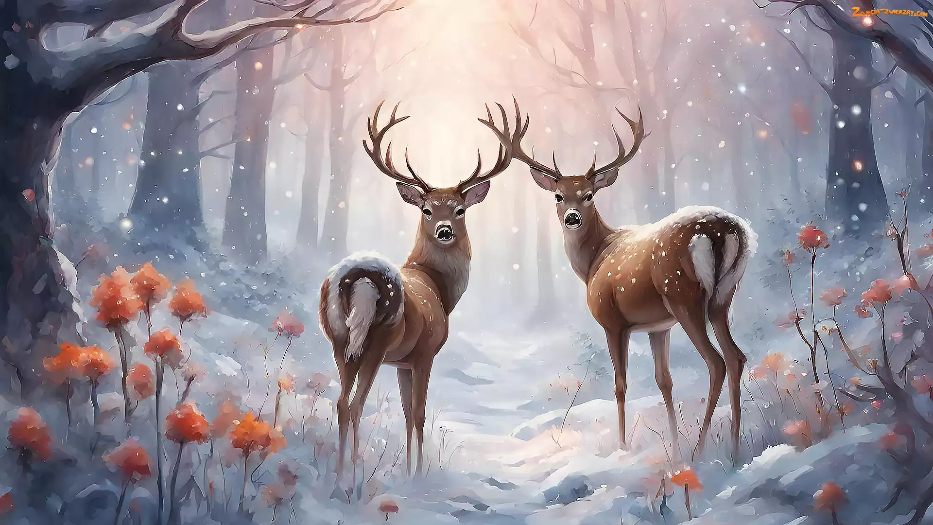 Zdjęcie: Dwa, Jelenie, 2D, Kwiaty