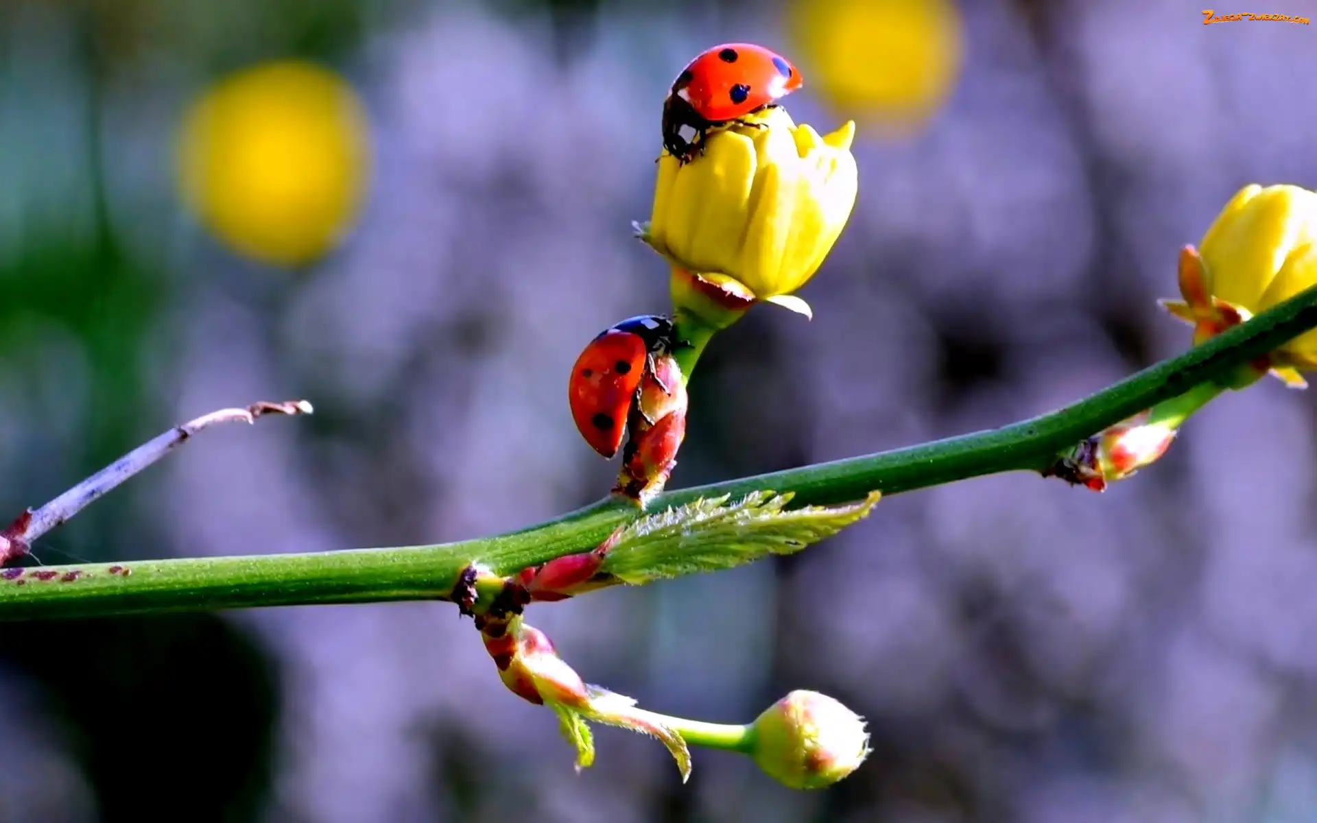 Zdjęcie: Kwiaty, Wiosna, Gałązka, Biedronki