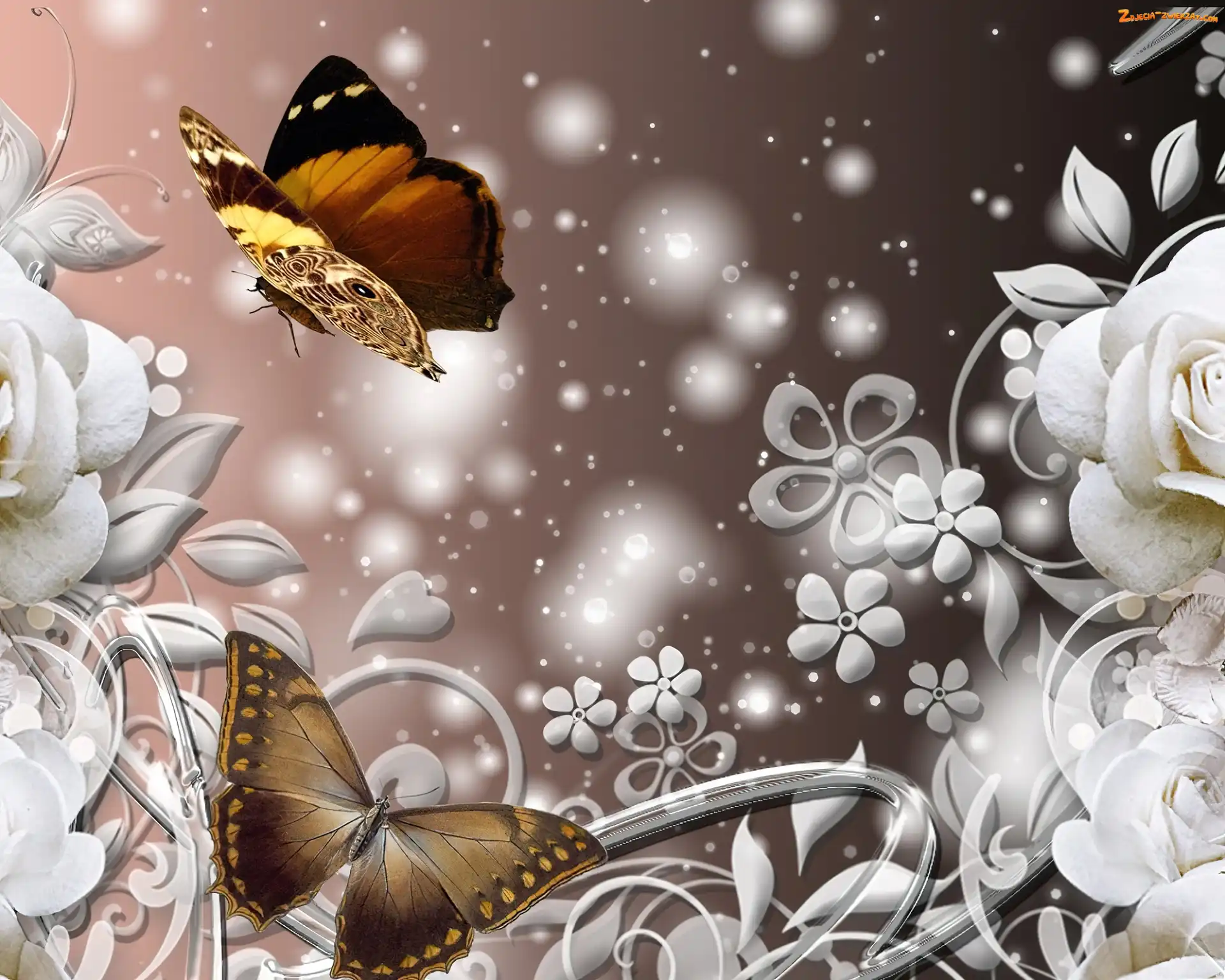Zdjęcie: Grafika, Kwiaty, Motyle