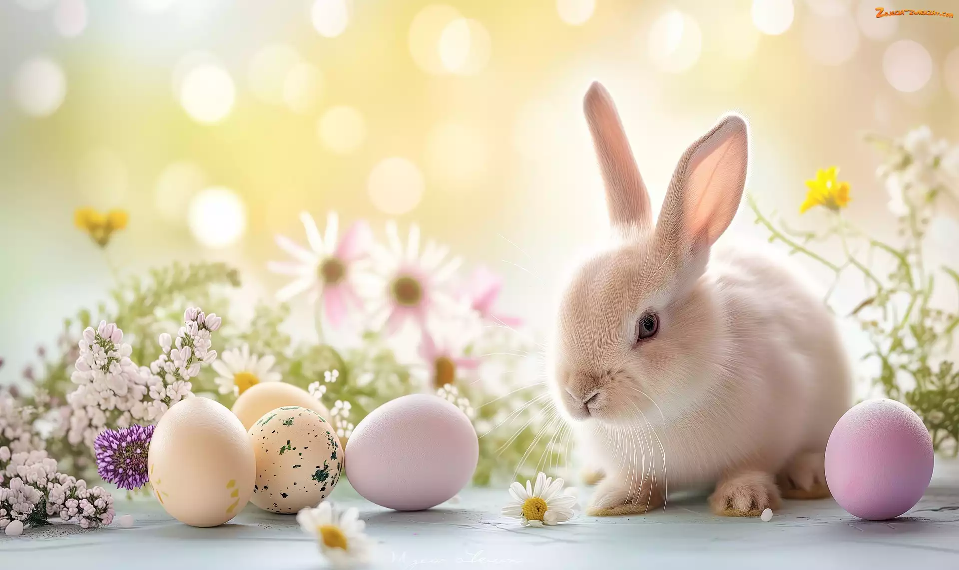 Zdjęcie: Królik, Kwiaty, Grafika, Wielkanoc, Pisanki