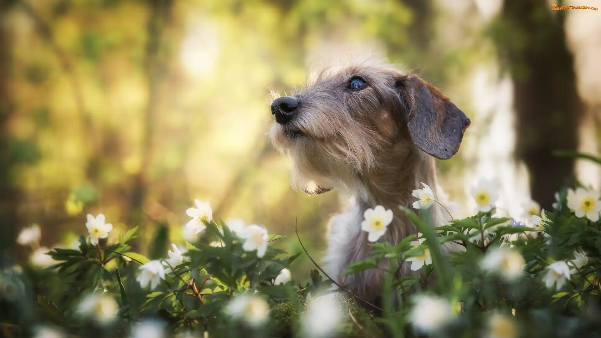 Kwiaty, Pies, Jamnik szorstkowłosy