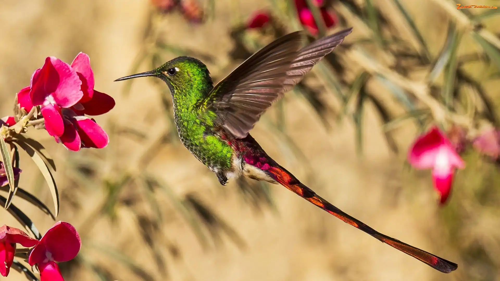 Zdjęcie: Koliber, Kwiaty, Ptak