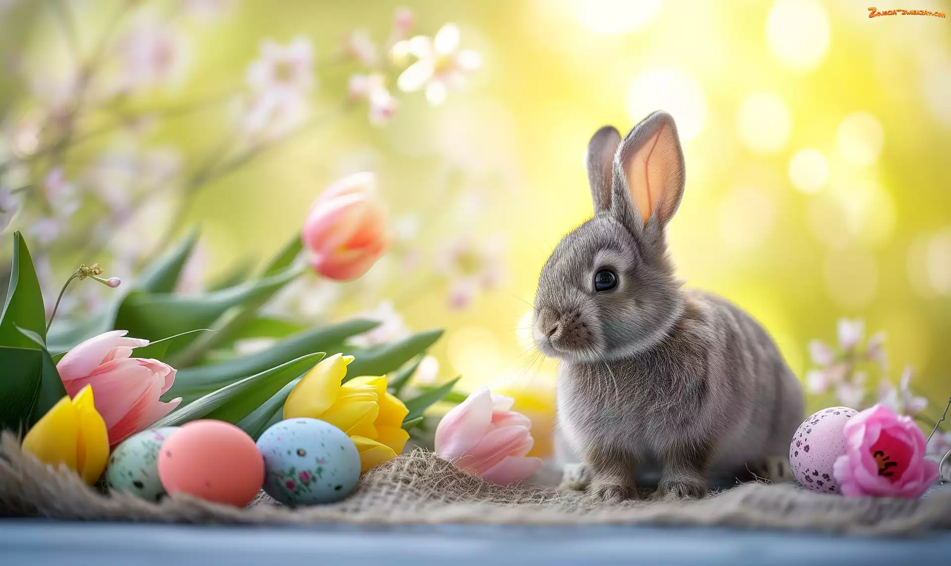 Zdjęcie: Tulipany, Wielkanoc, Kolorowe, Kwiaty, Grafika, Pisanki, Królik