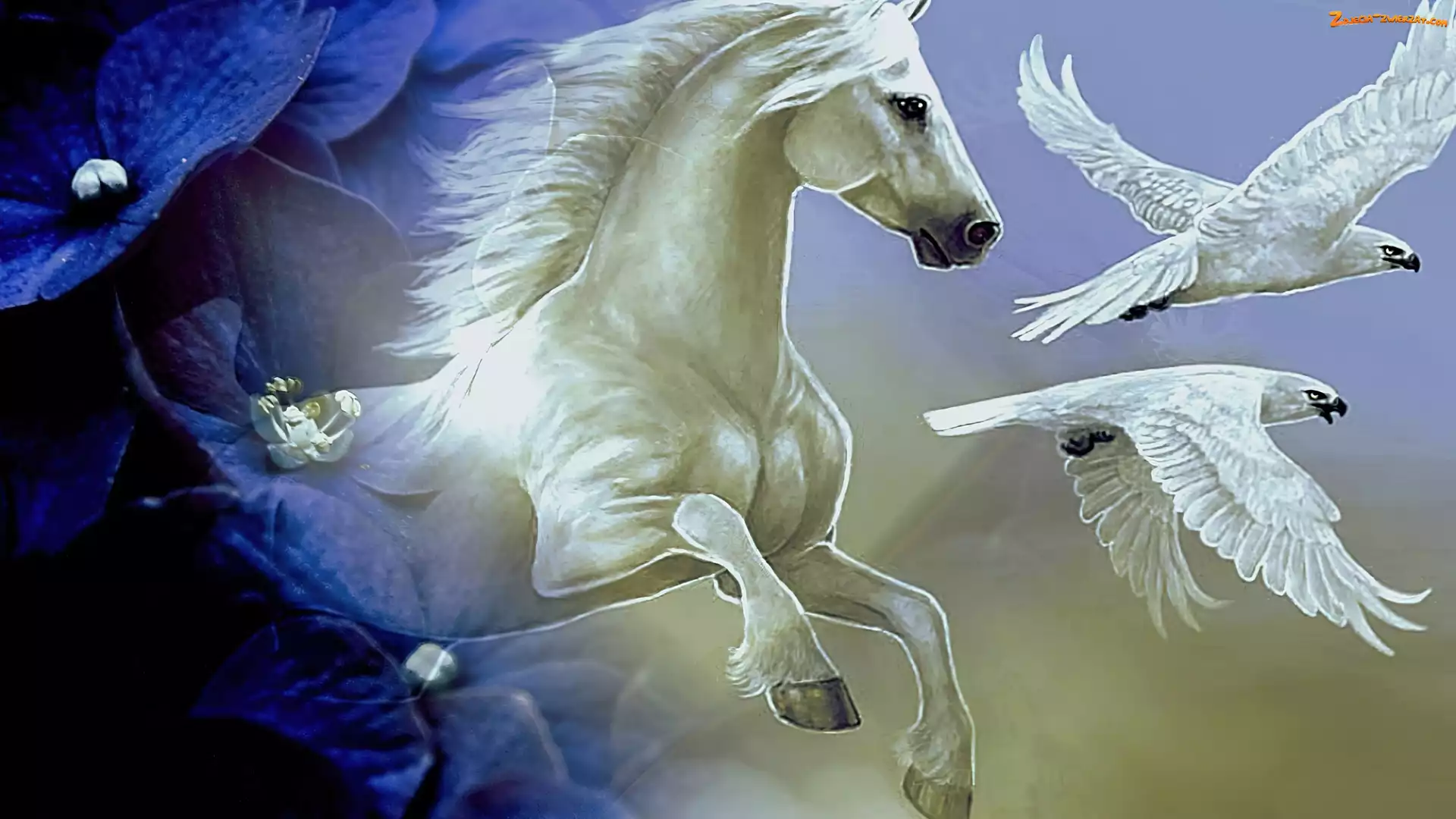 Zdjęcie: Kwiaty, Orły, Ptaki, Koń, Białe
