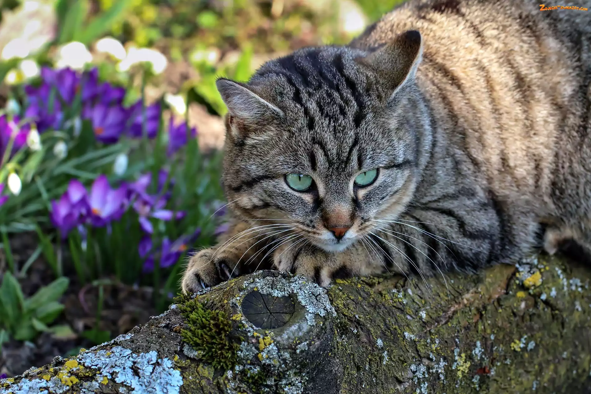 Zdjęcie: Kwiaty, Drzewo, Kot, Krokusy