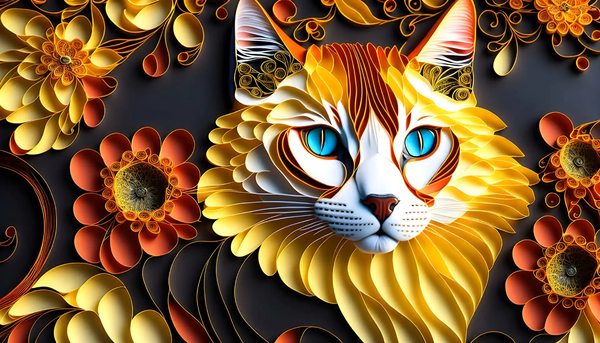 Zdjęcie: Kot, Kolorowe, Grafika, Kwiaty