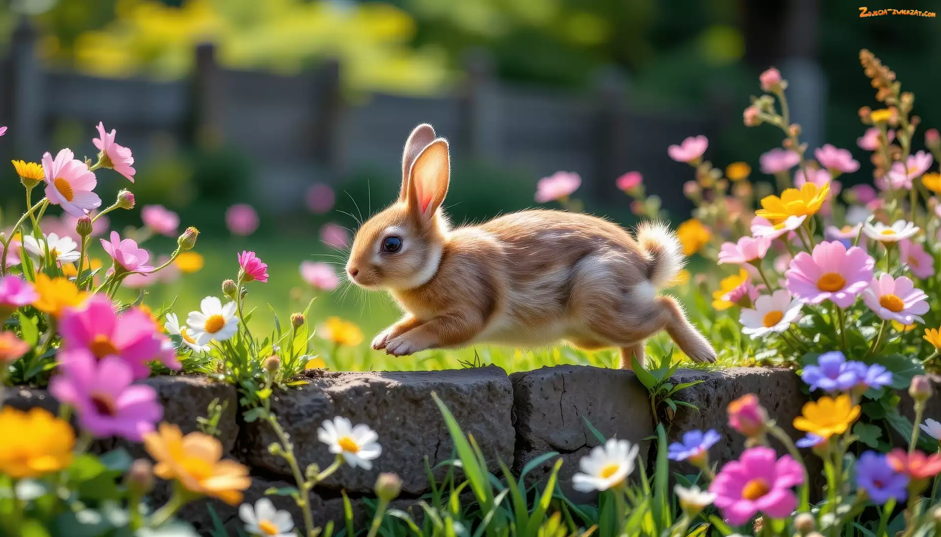Zdjęcie: Królik, Kolorowe, Murek, Kwiaty