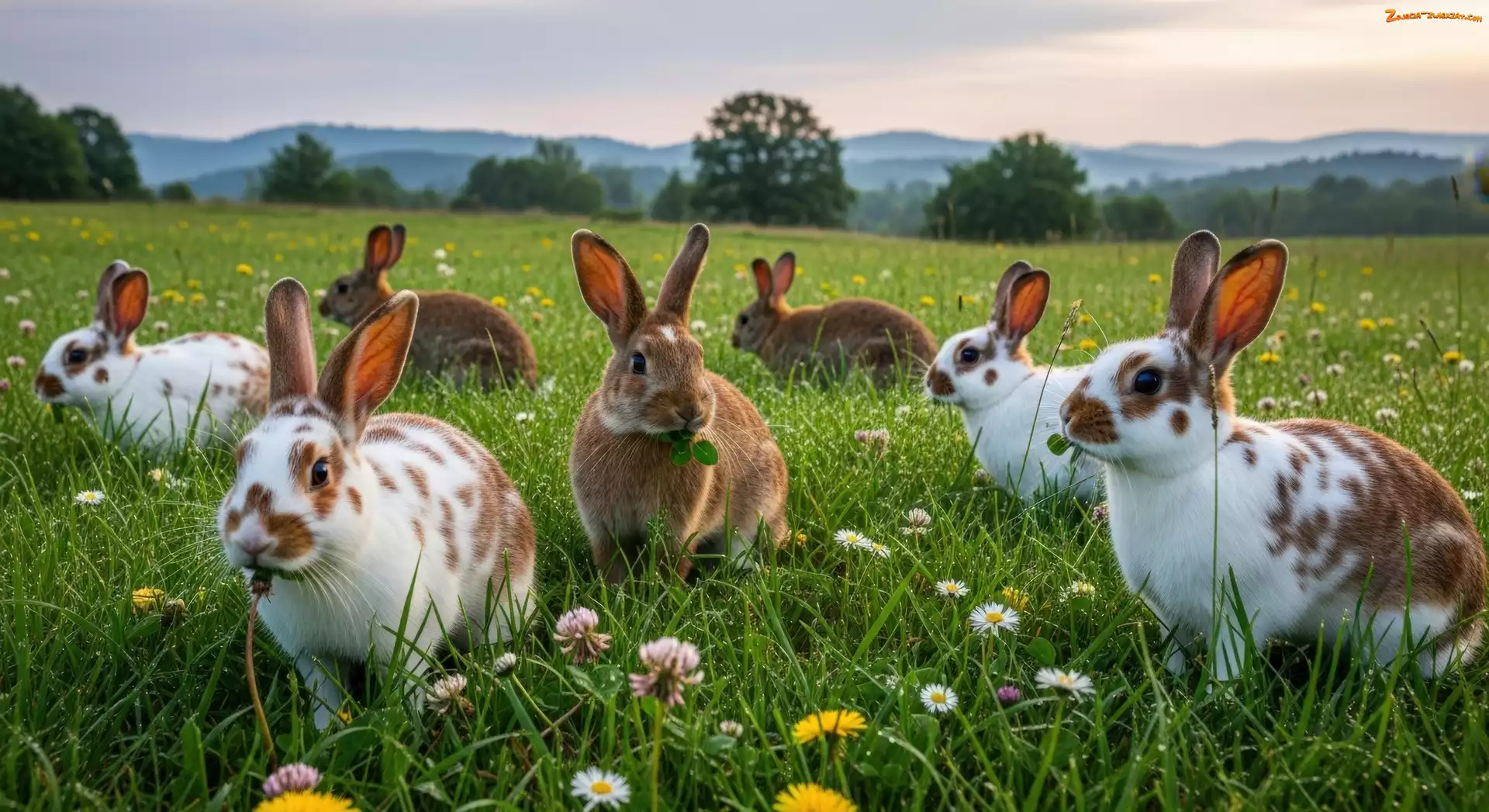 Zdjęcie: Króliki, Łąka, AI, Kwiaty