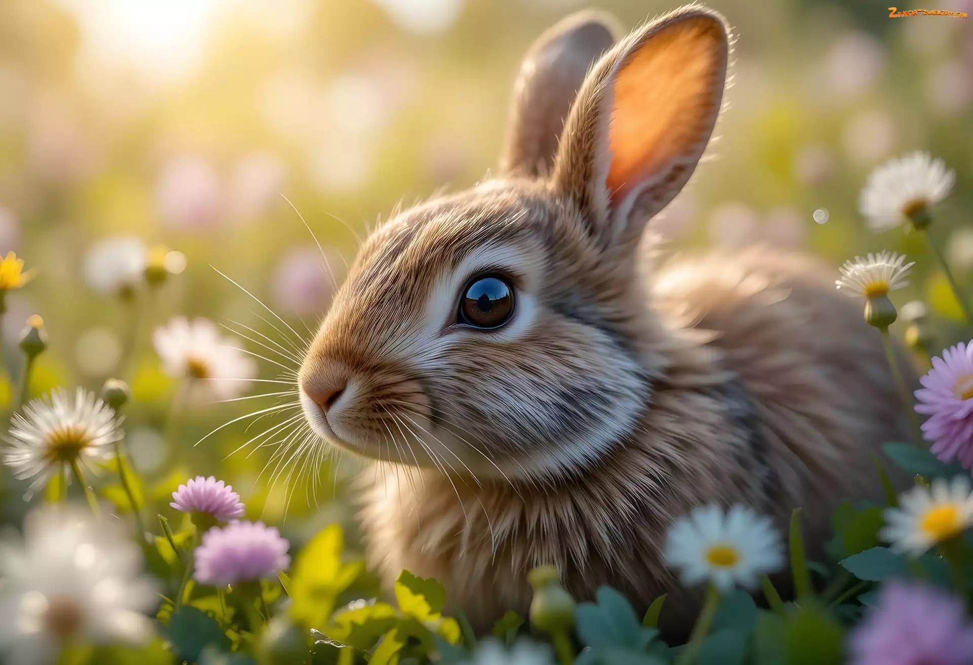 Zdjęcie: Leżący, Królik, Grafika, Kwiaty