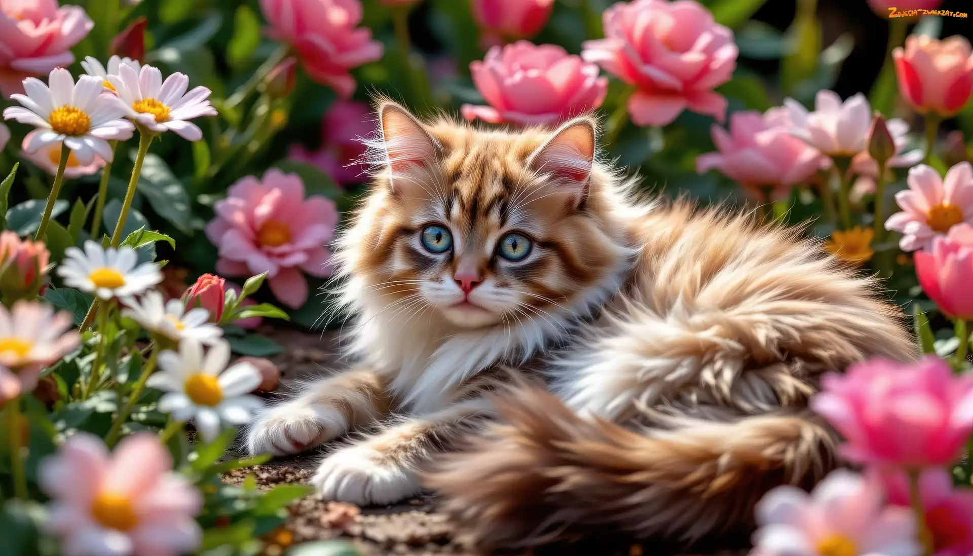 Zdjęcie: Leżący, Kot, Róże, Kwiaty