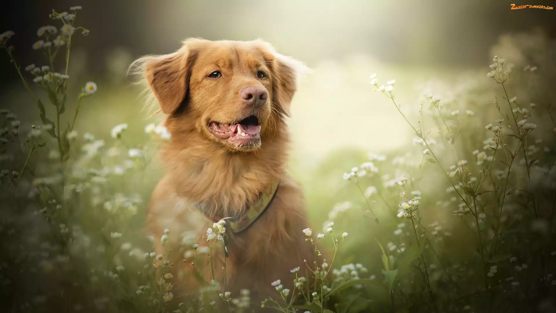 Zdjęcie: Przymiotno, Kwiaty, Retriever z Nowej Szkocji, Pies, Mordka