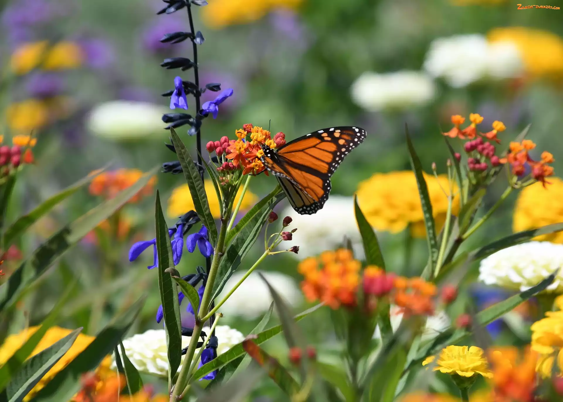 Zdjęcie: Kwiaty, Kolorowe, Danaid wędrowny, Motyl, Monarcha