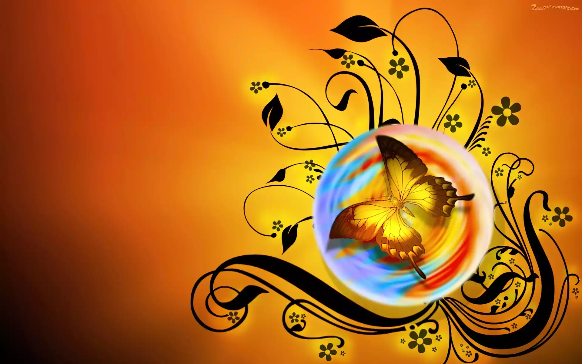Czarne, Kuli, Kwiaty, Motyl, W