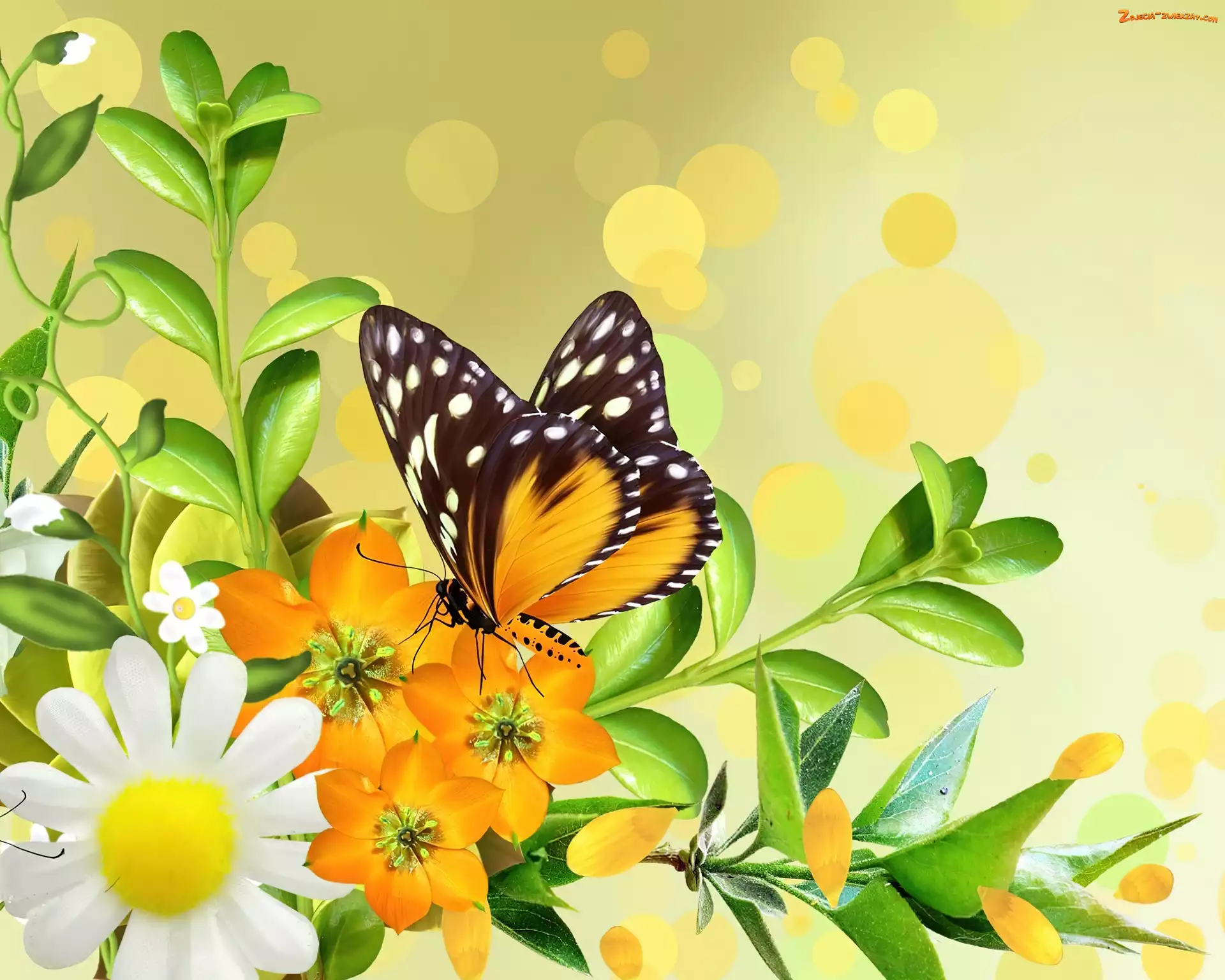 Zdjęcie: Kwiaty, Art, Żółte, Motyl