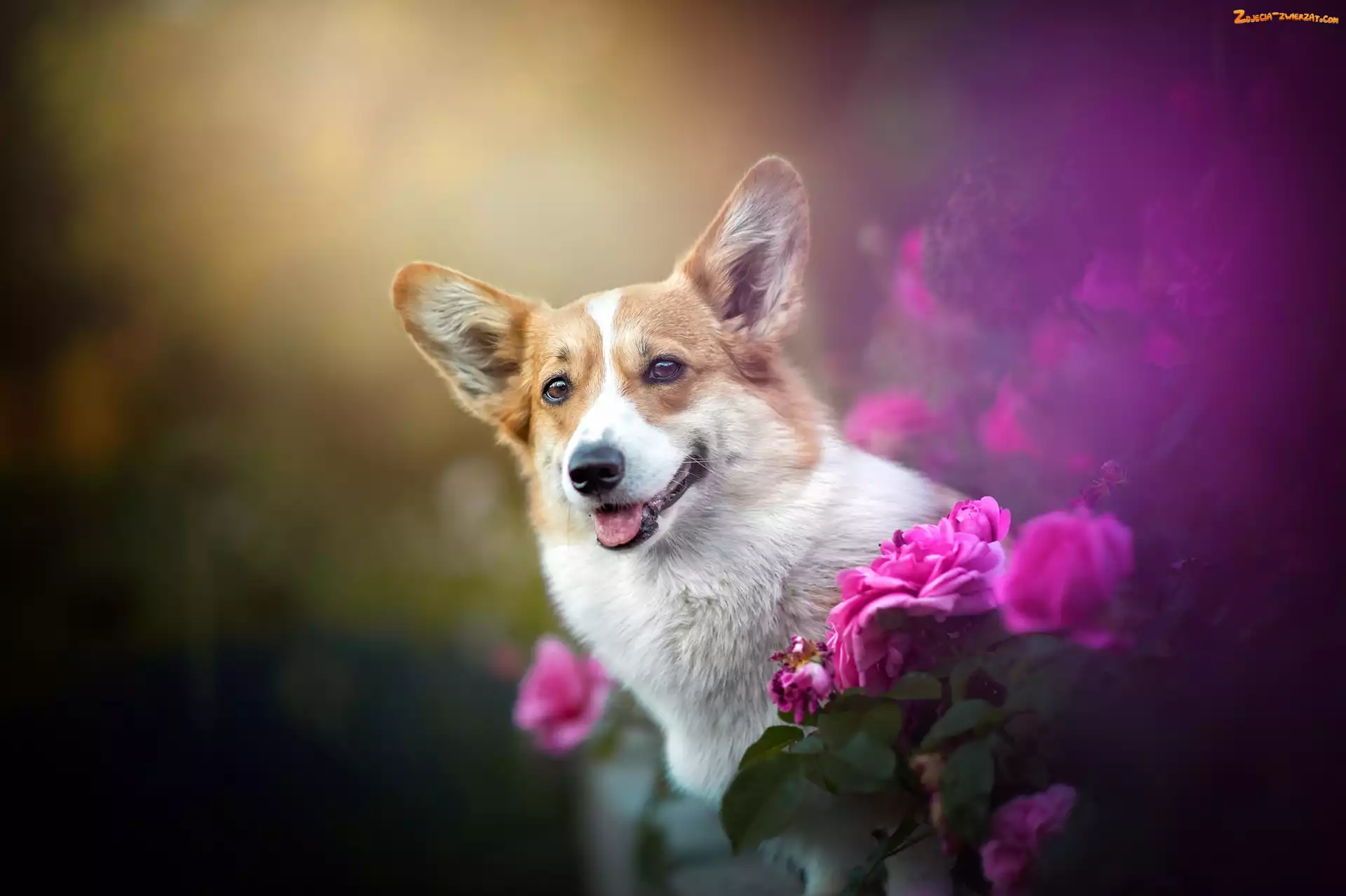 Zdjęcie: Kwiaty, Róże, Welsh corgi pembroke, Różowe