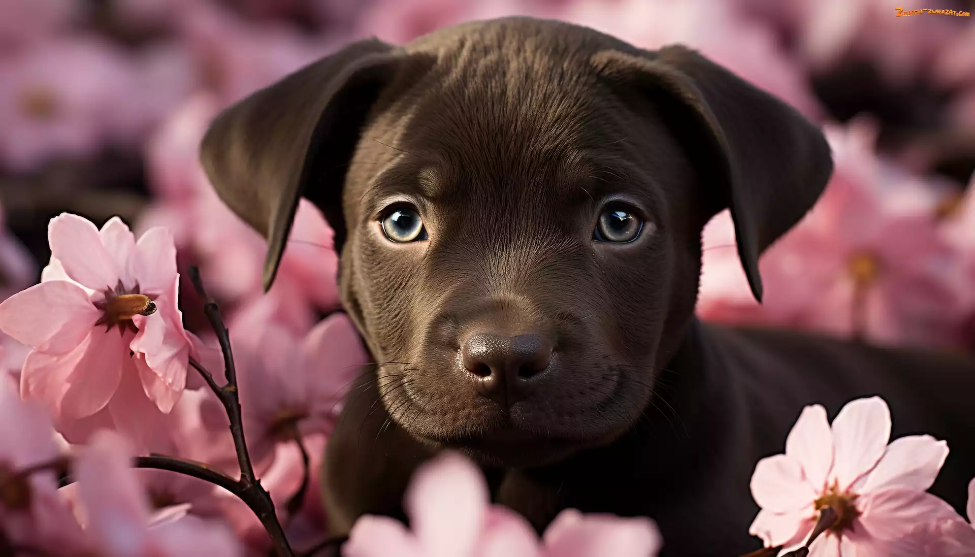 Zdjęcie: Pies, Szczeniak, Różowe, Kwiaty