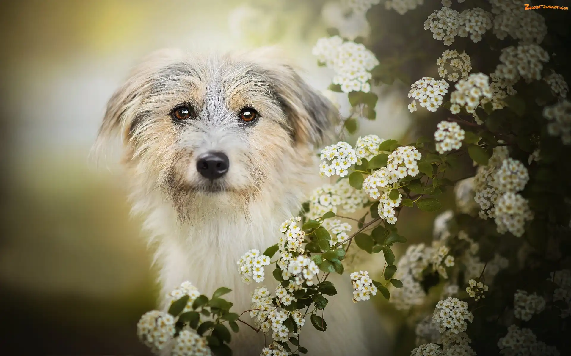 Zdjęcie: Kwiaty, Tawuła, Pies, Gałązki