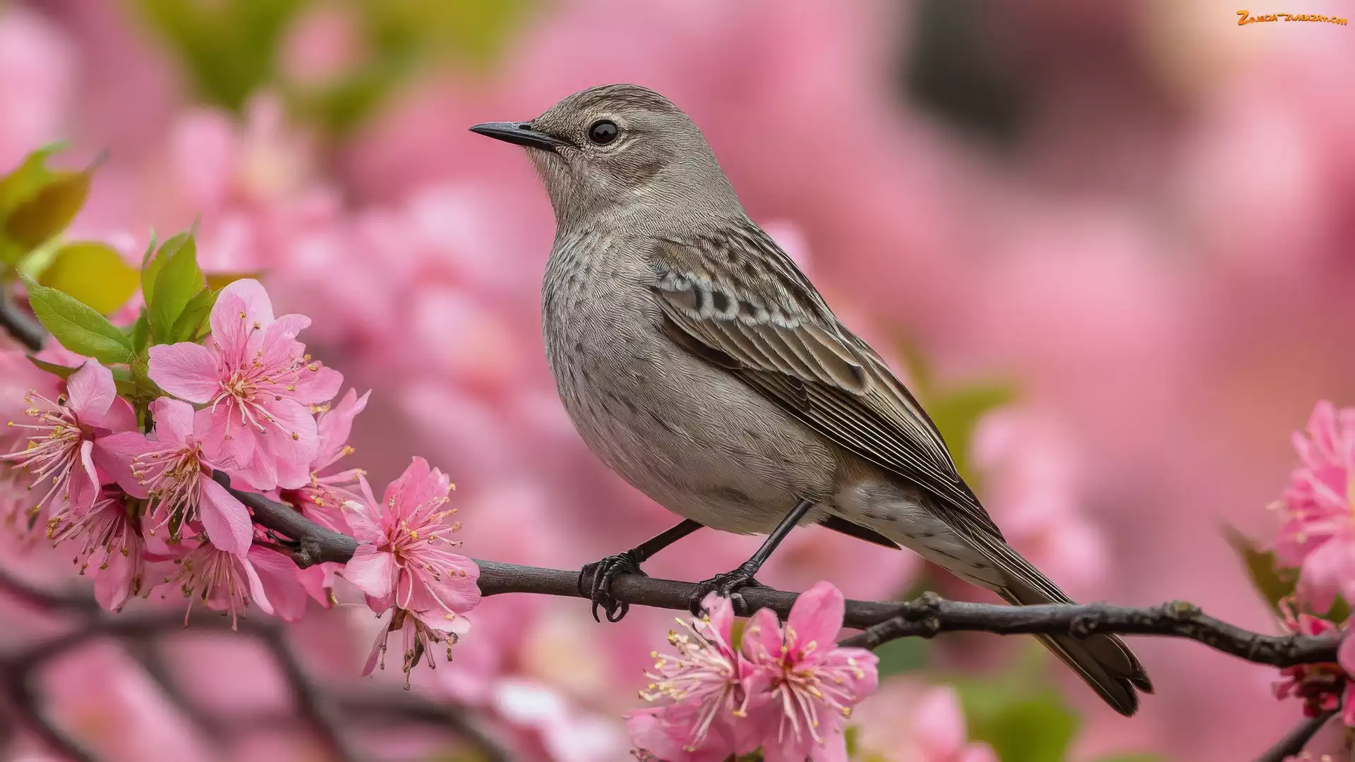 Zdjęcie: Ptak, Gałązka, Różowe, Kwiaty