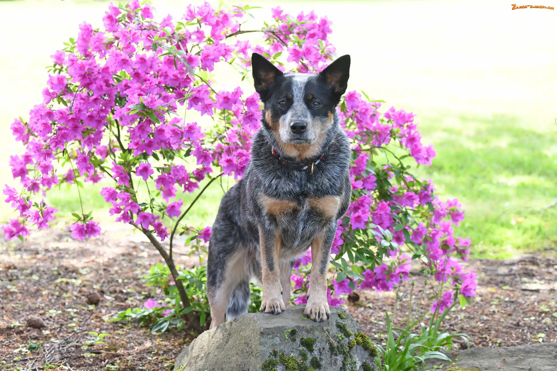 Zdjęcie: Różanecznik, Kwiaty, Australian cattle dog, Pies, Obroża