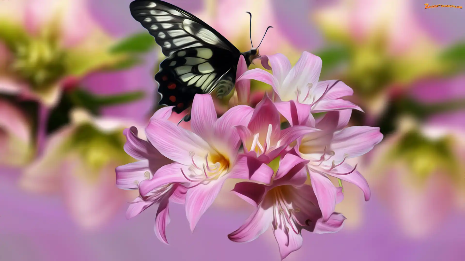 Zdjęcie: Kwiaty, Grafika, Różowe, Motyl