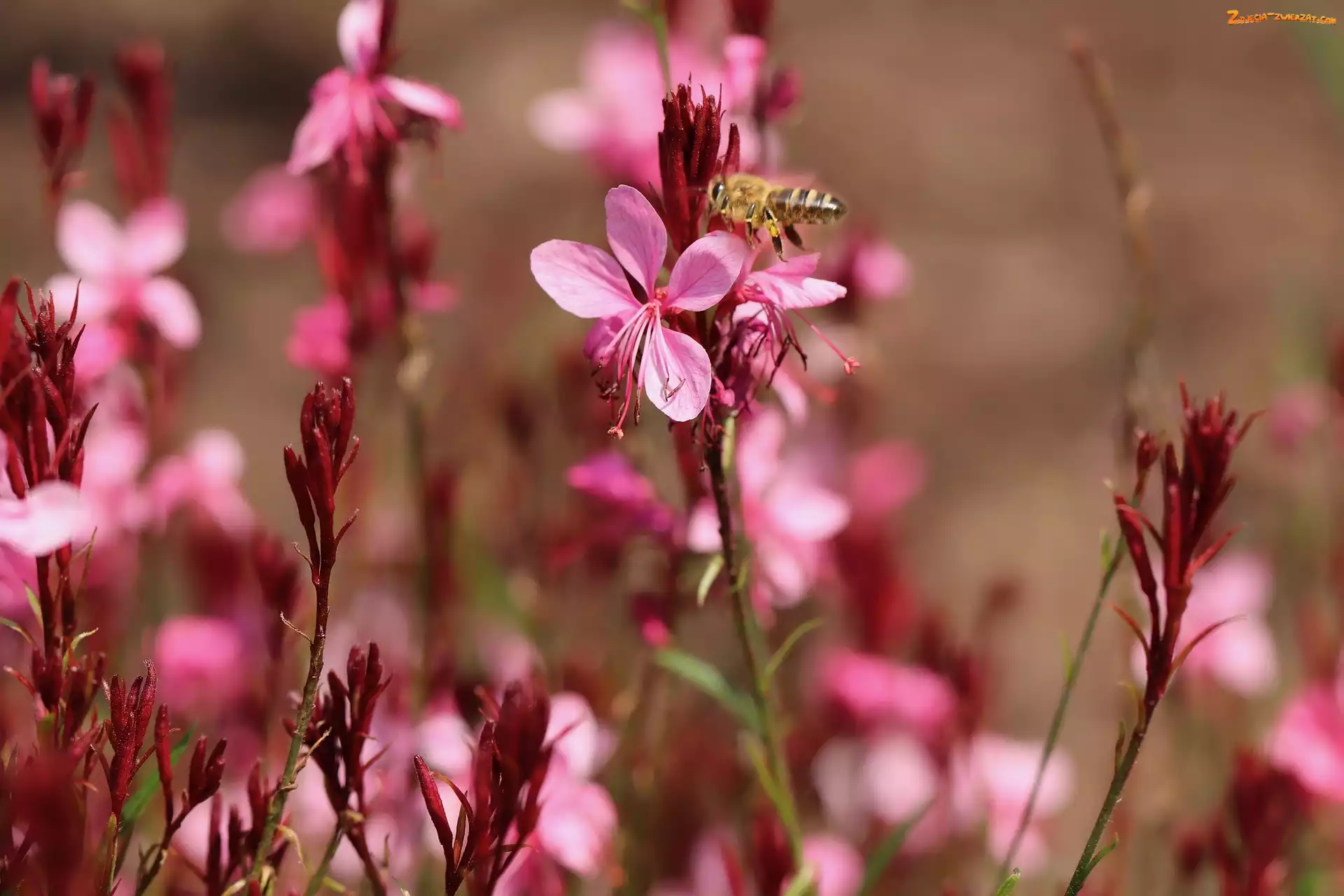 Zdjęcie: Kwiaty, Pszczoła, Różowe, Gaura
