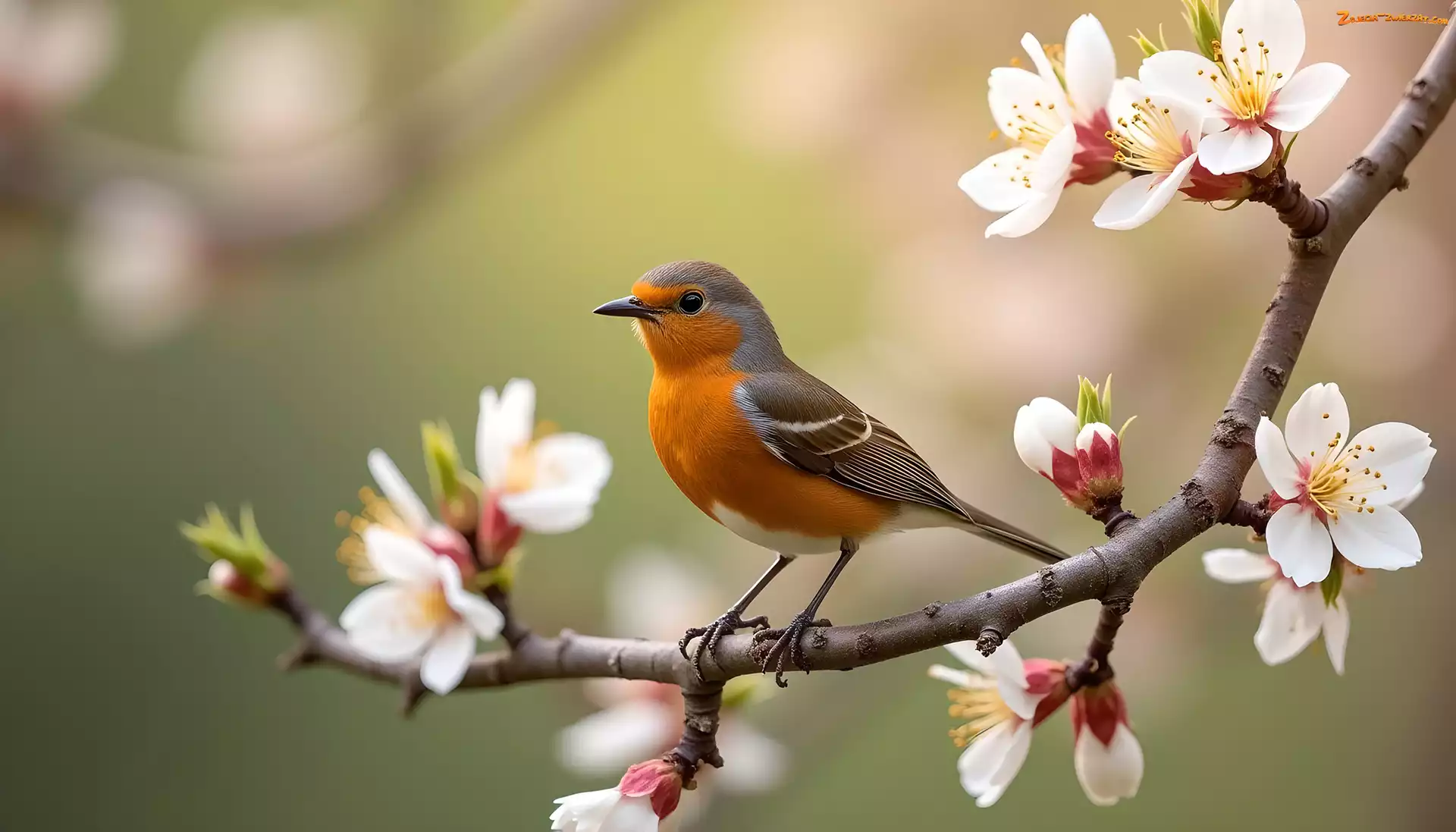 Zdjęcie: Rudzik, Gałąź, Grafika, Kwiaty