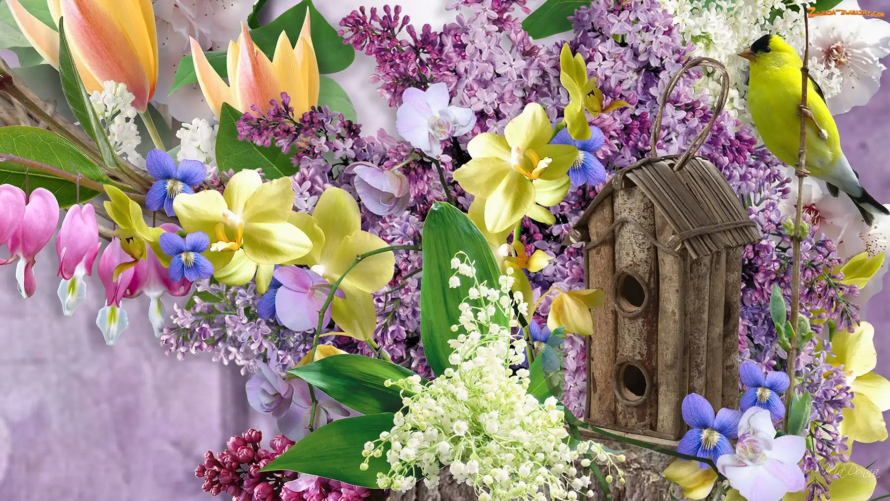 Zdjęcie: Karmnik, Bez, Kwiaty, Czyżyk, Tulipany, Konwalie, Budka, Czyż, Storczyki