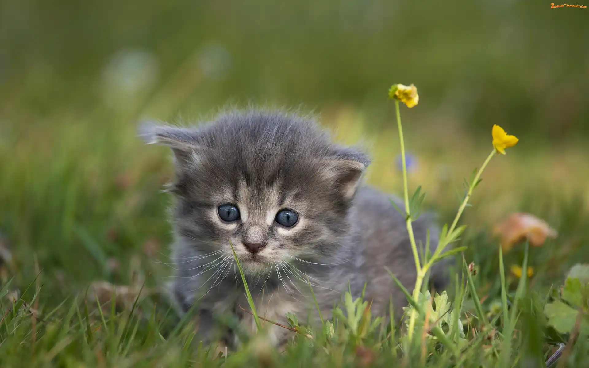 Zdjęcie: Kwiaty, Trawa, Mały, Szary, Kot