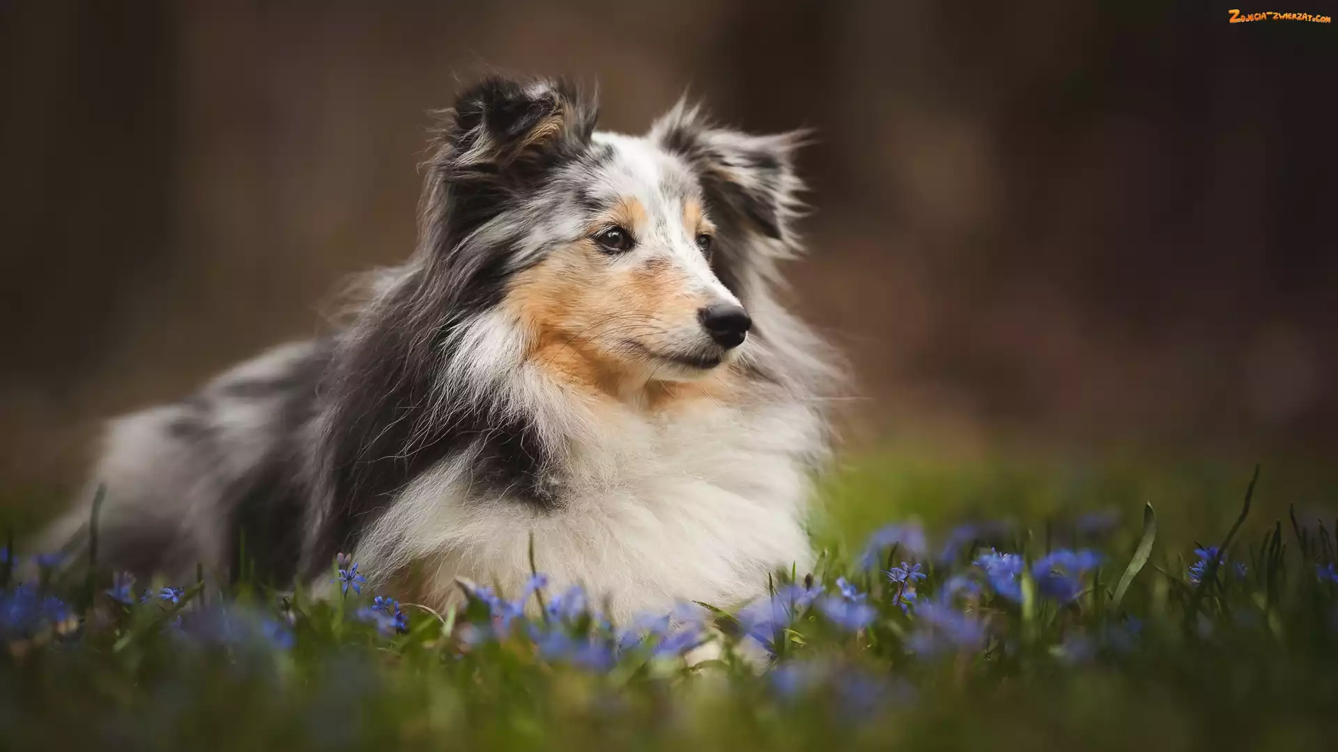 Zdjęcie: Kwiaty, Owczarek szetlandzki, Łąka
