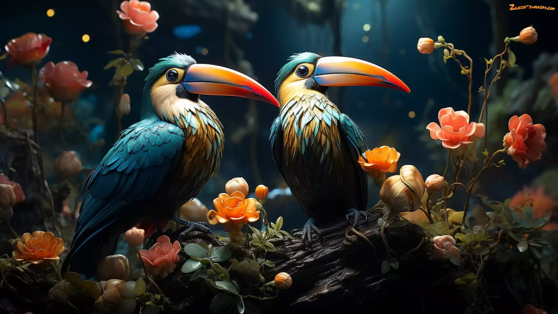 Zdjęcie: Kwiaty, Dwa, Tukany