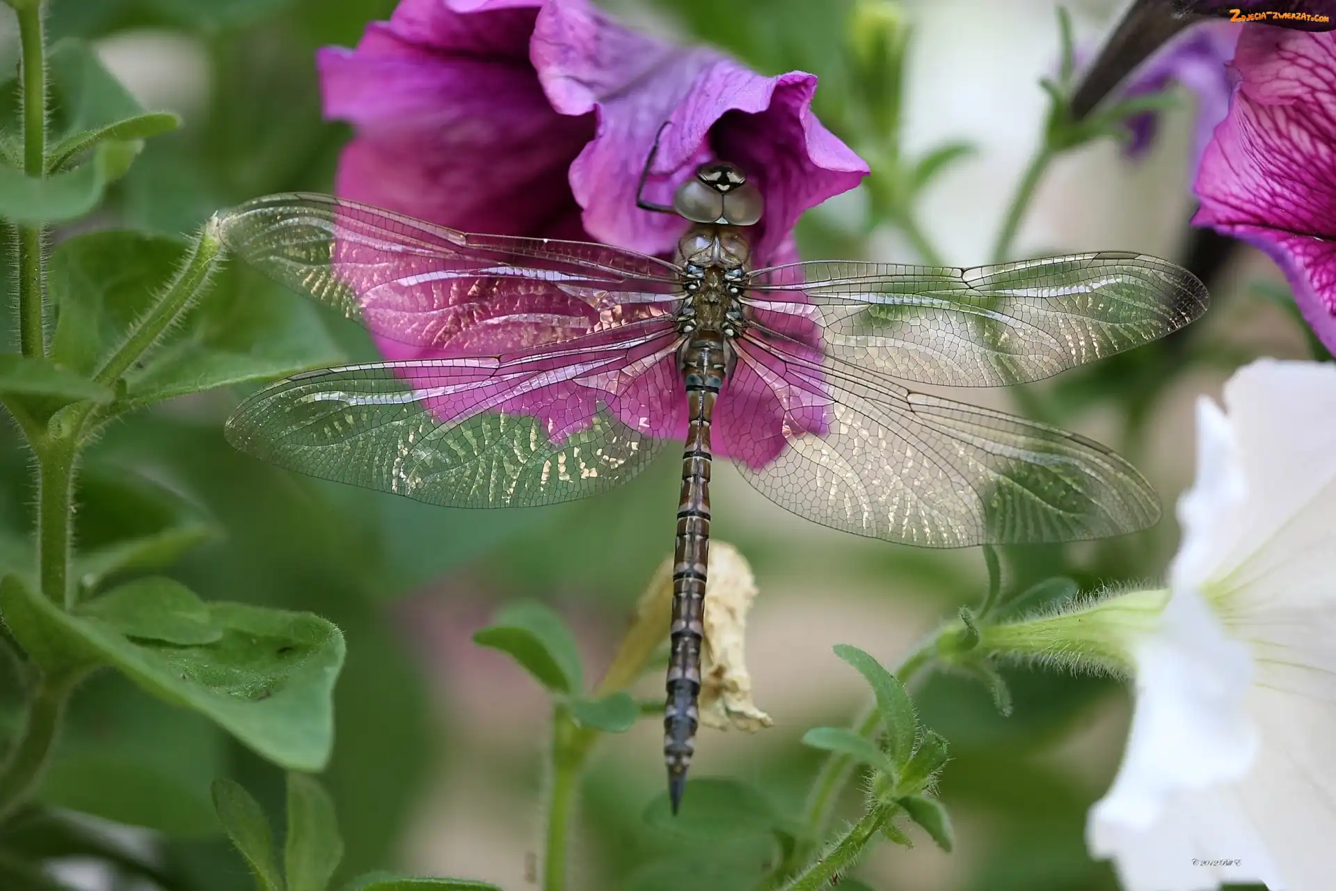 Zdjęcie: Ważka, Kwiaty, Surfinie