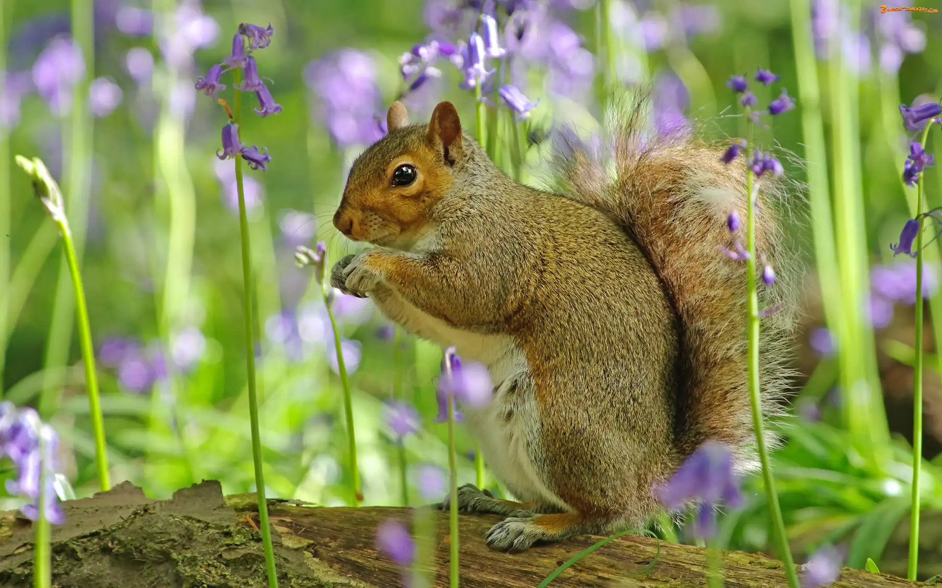 Kwiaty, Dzwonki, Wiewiórka, Fioletowe