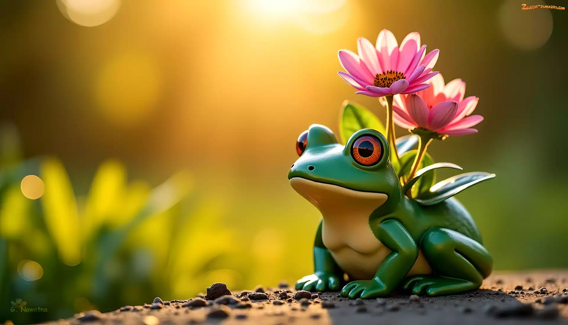Zdjęcie: Żaba, Doniczka, Grafika, Kwiaty