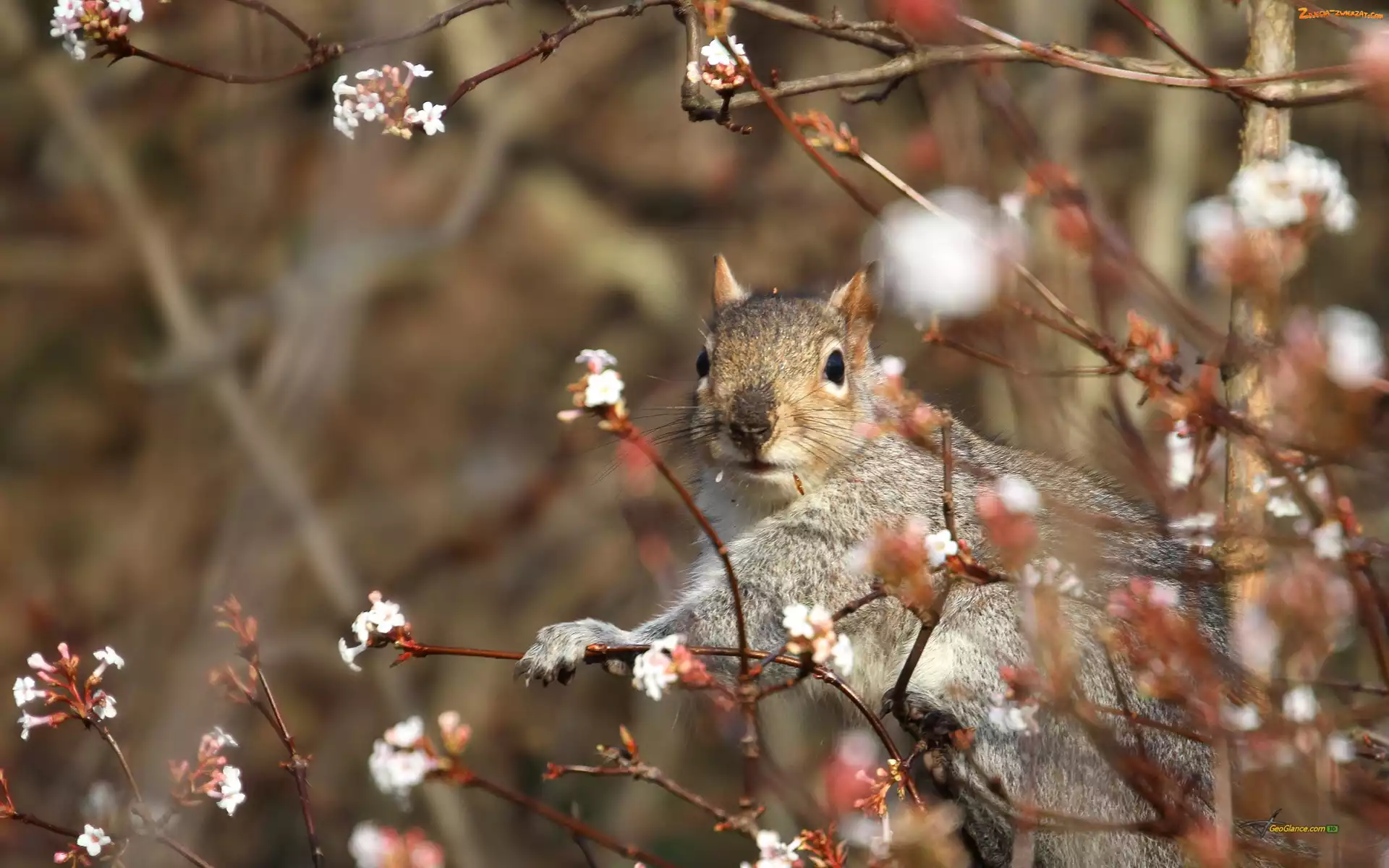 Zdjęcie: Kwitnące, Wiewiórka, Wiosna, Drzewo