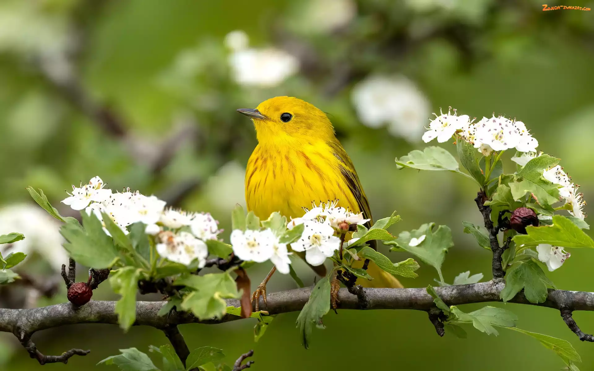 Zdjęcie: Lasówka złotawa, Kwiaty, Gałąź, Żółty, Wiosna, Ptak, Kwitnienie