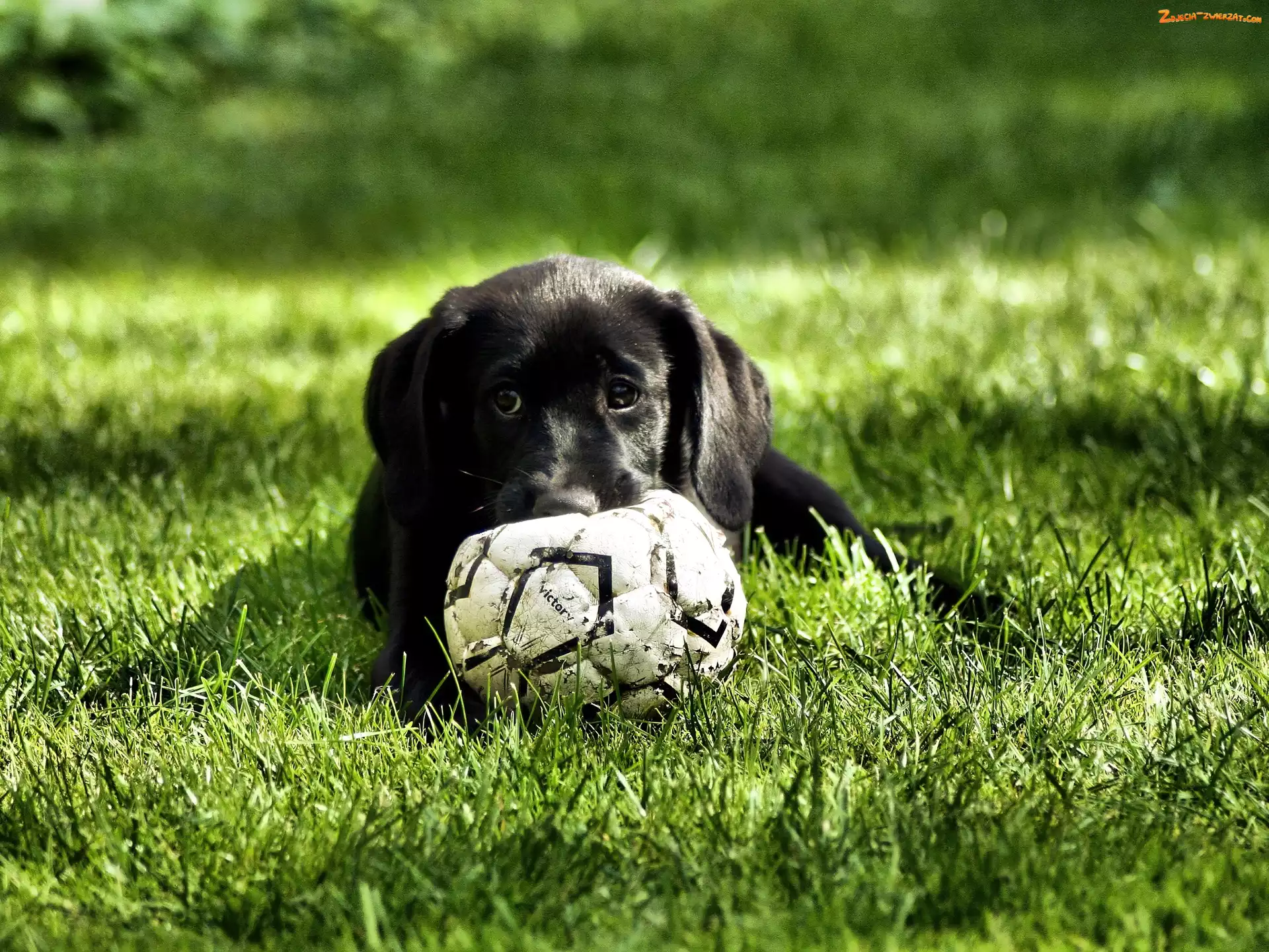 Zdjęcie: Labrador Retriever, Piłka, Czarny, Szczeniak