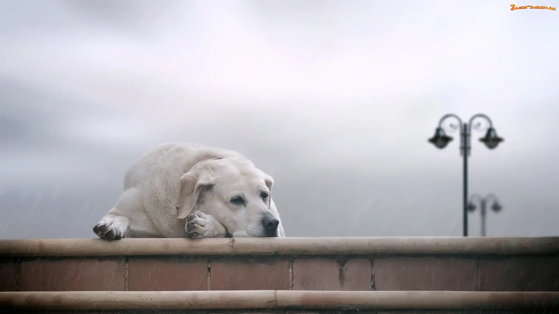 Zdjęcie: Pies, Smutny, Labrador, Schody, Deszcz