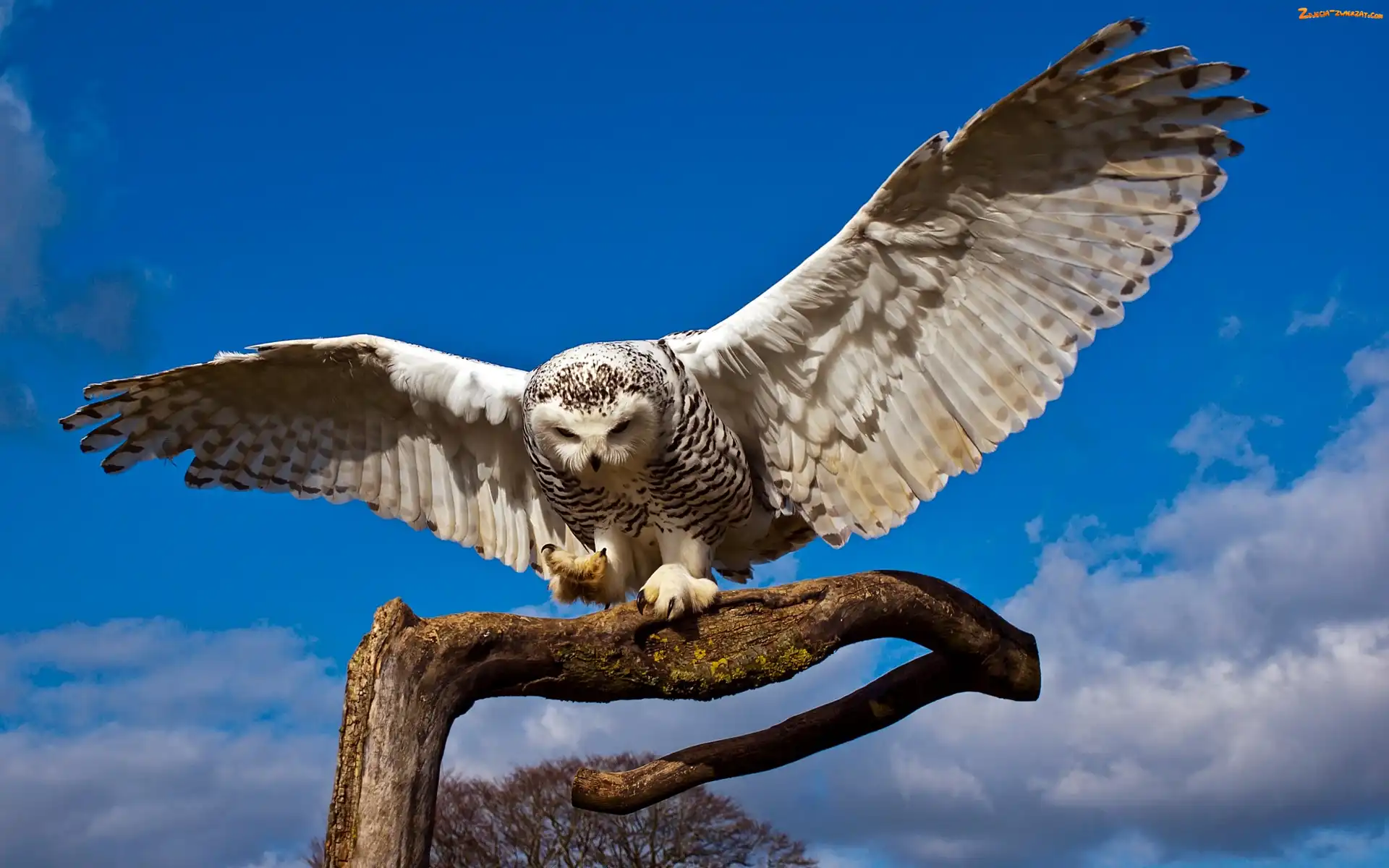 Zdjęcie: Lądowanie, Sowa Śnieżna, Konar