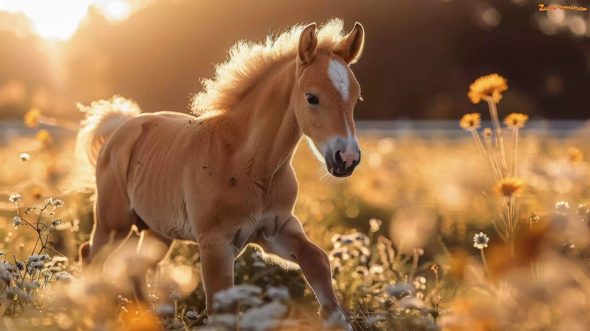 Zdjęcie: Kwiaty, Łąka, Grafika, Koń, Źrebak